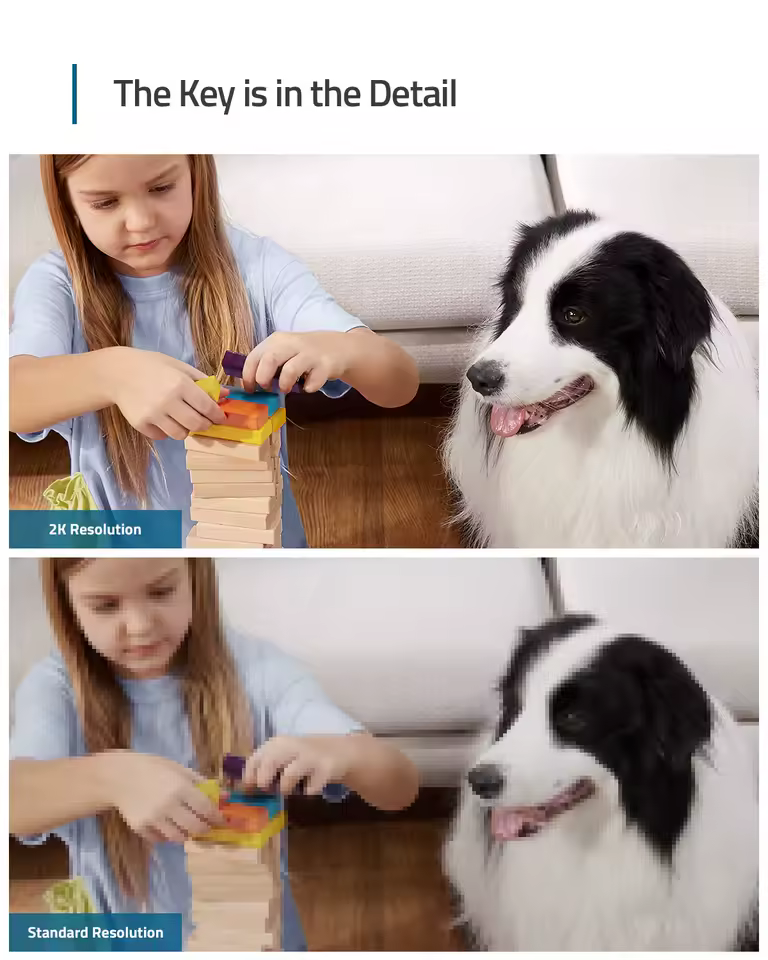 شاهد كل حدث بوضوح مذهل بدقة 2K (3 ميجابكسل) - أي 3 أضعاف وضوح الكاميرات القياسية 1080p. شاهد الوجوه، اقرأ النصوص، والتقط كل التفاصيل بجودة صورة استثنائية. مثالية لمراقبة منزلك وأطفالك وحيواناتك الأليفة بدقة.